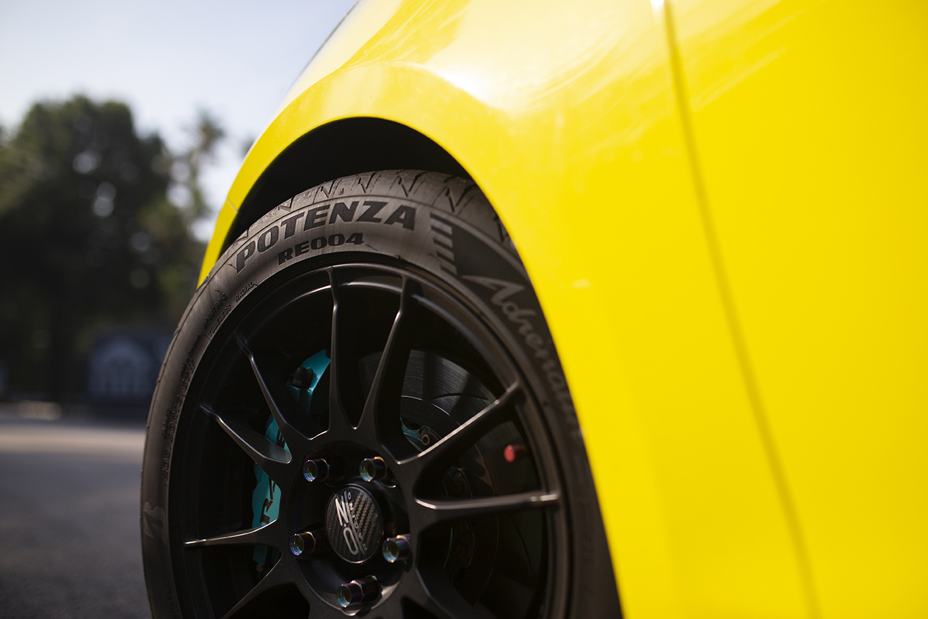 Gabriel chose the POTENZA Adrenalin RE004, Bridgestone’s street performance tyre, in the 205/50 R16 size for his Suzuki Swift Sport (ZC32S).
